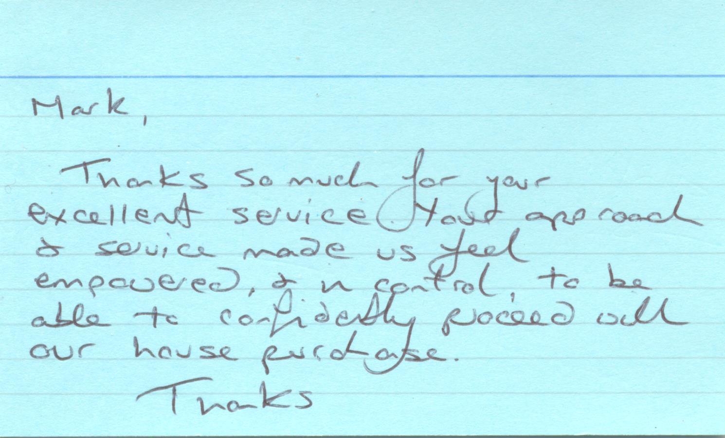 the estate agent who was able to recommended you.You gave me such confidence in your service and thats why I 'm writing to say thanks.