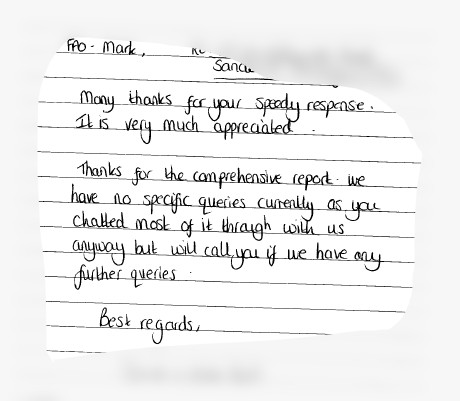 "My HomeBuyers survey was completed efficiently and comprehensively